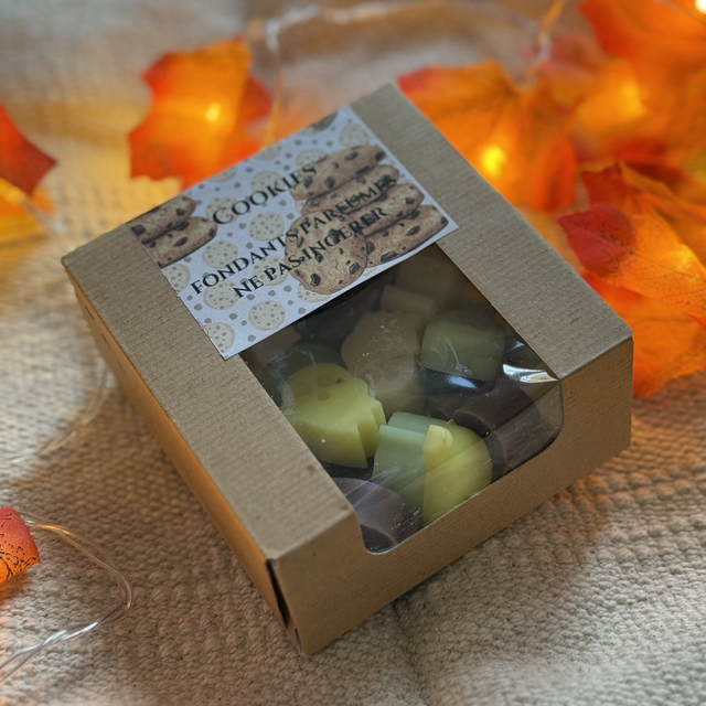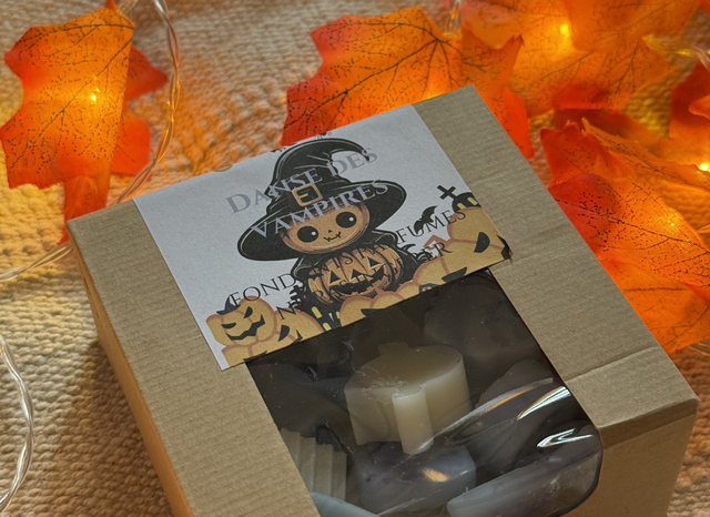 Découvrez nos fondants mystères, odeur Cookie, Vanille épicée et Danse des Vampires, vous recevrez une boîte de 100g avec des petits fondants en forme mystère 🤠🧡